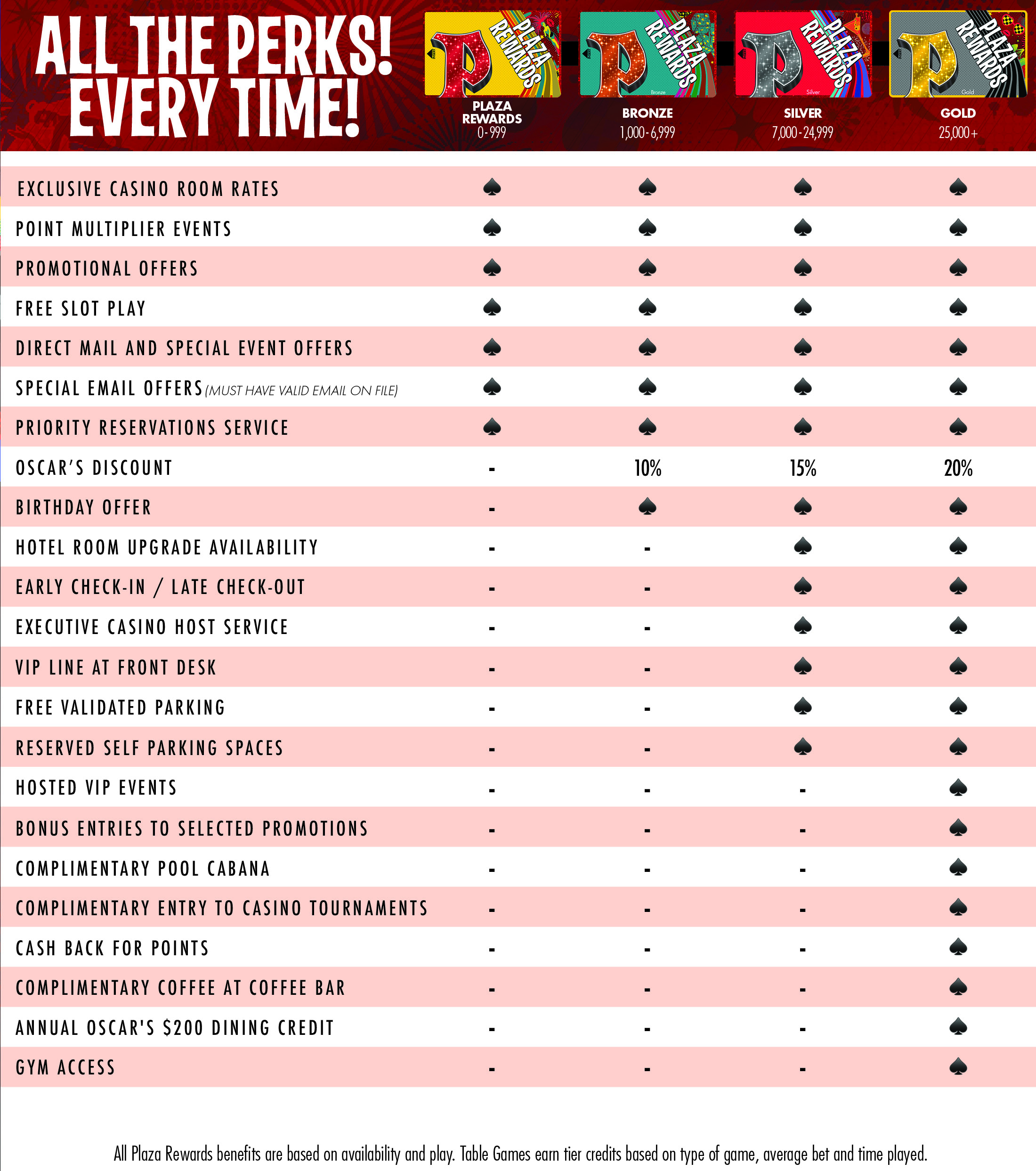 *Only redeemable for Gold. See Plaza Rewards for details.