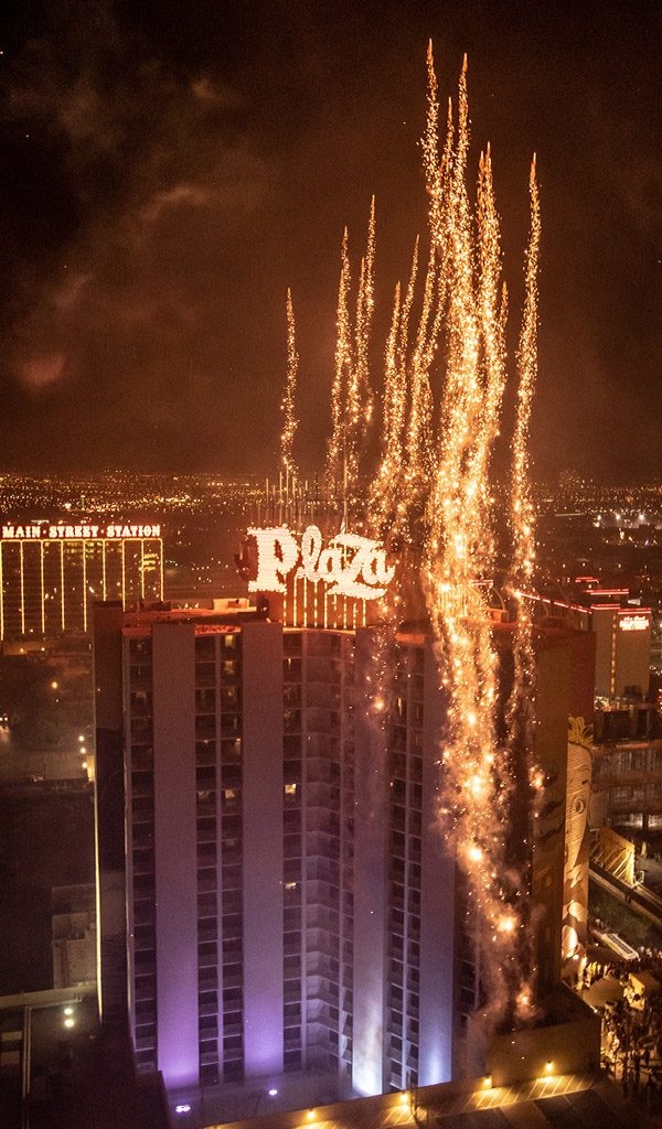 After the sun sets, the Plaza pool transforms into the ultimate rooftop destination to watch our spectacular grand finale fireworks illuminate the Downtown Las Vegas skyline for America’s 250th anniversary.
