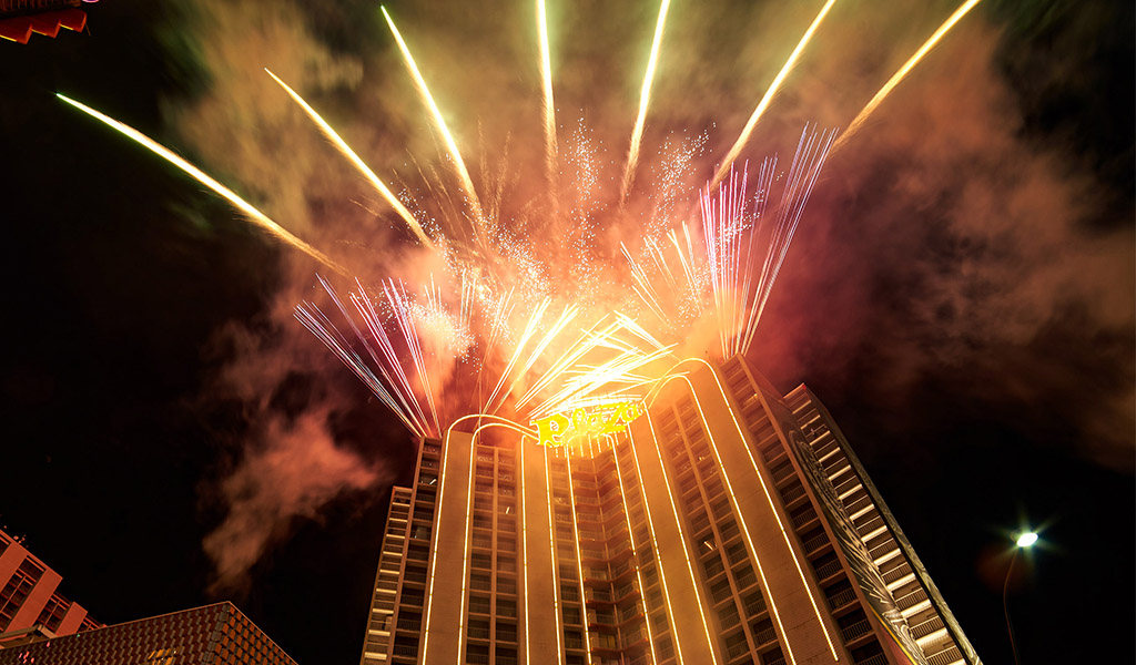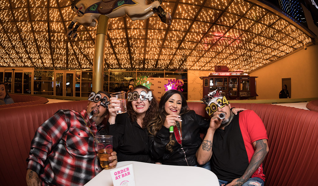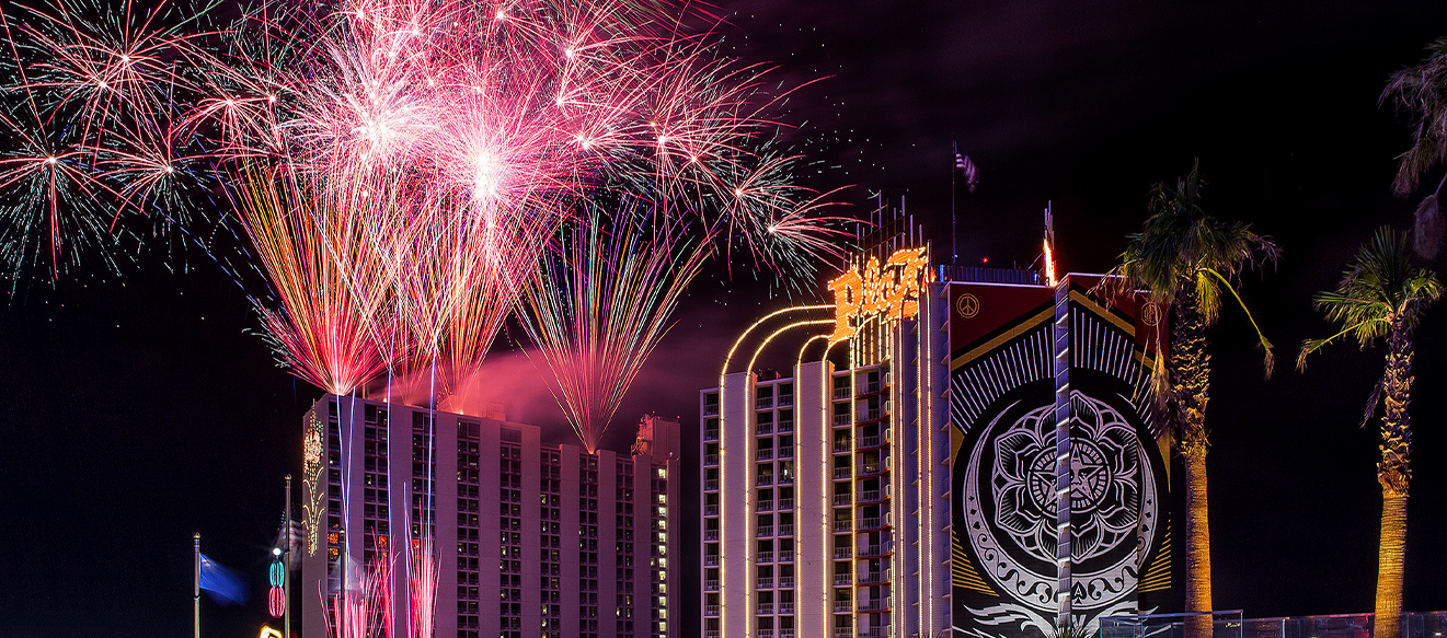At midnight, experience Plaza’s annual, and Downtown’s only, New Year’s Eve Fireworks show. Prime viewing spots include on Main Street (which will be closed to vehicles), in front of the Plaza’s Carousel Bar and Oscar’s under the glass dome.