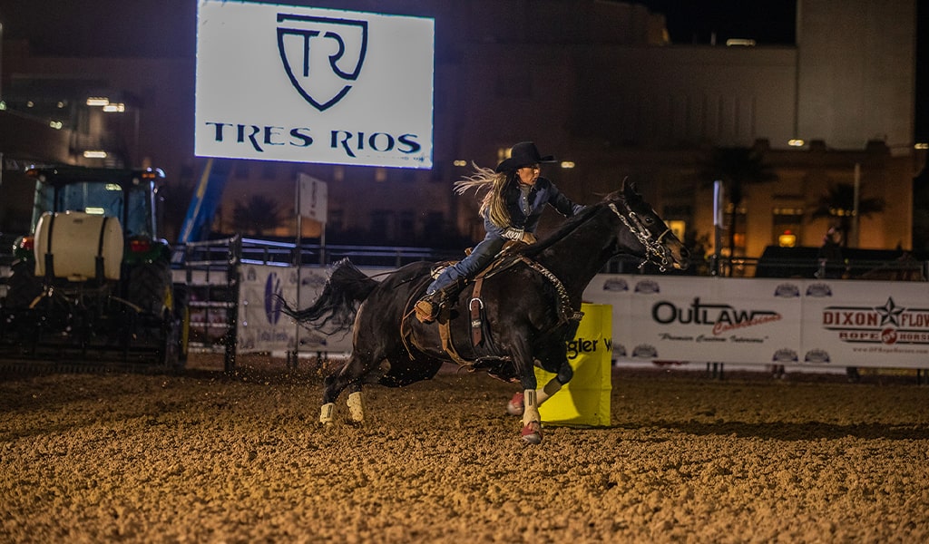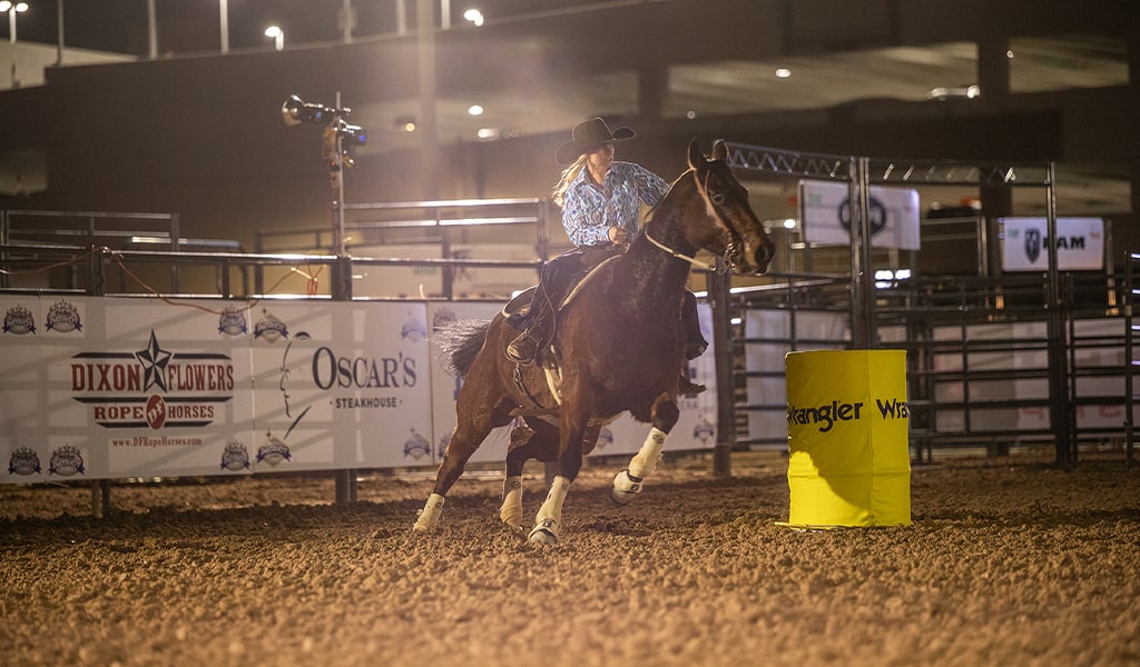 Speed, precision, and rising stars! Watch 3D pole bending, 4D barrel racing, Hooey Junior Patriot, and Junior Rope for the Crown Breakaway!