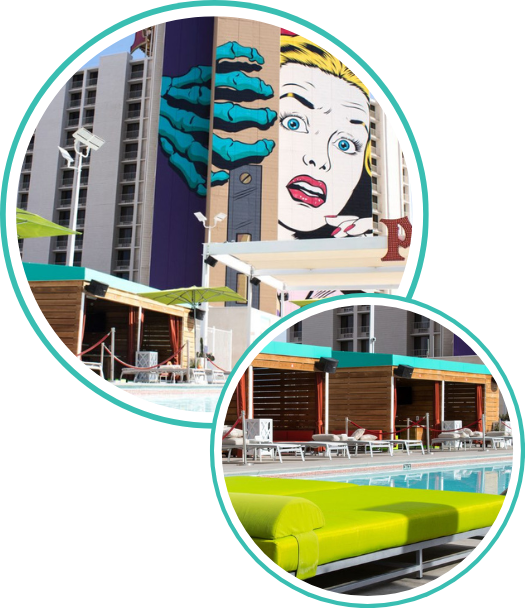 Each cabana accommodates up to six guests and is equipped with a flat-screen TV, furnishings, two lounge chairs and a mini refrigerator.