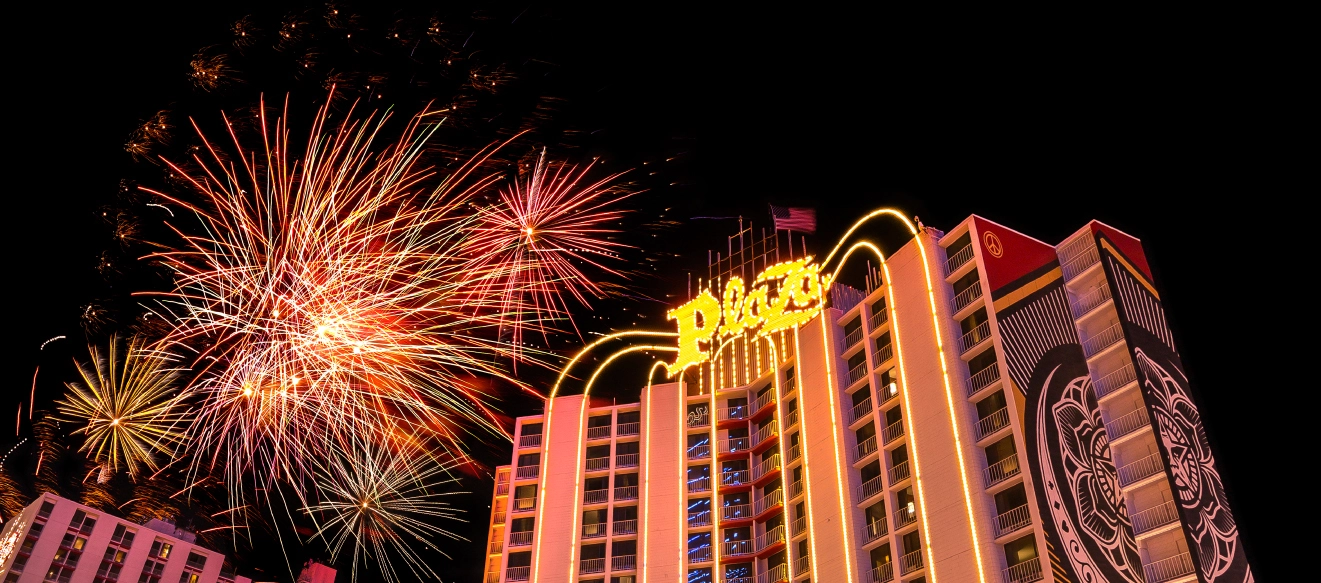 Dec 1, 2025 Plaza Hotel & Casino again celebrates New Year’s Eve with live fireworks show Also offering holiday room package, dinner special at Oscar’s, and NYE Super Bingo event